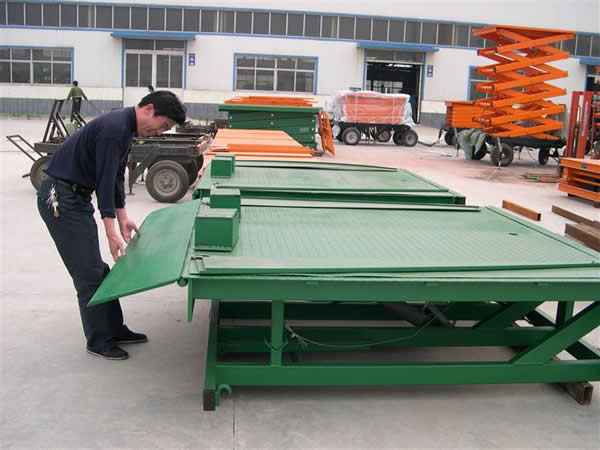 固定式登车桥电动液压高度可任意调节 ,提高装卸效率的液压固定式登车桥,采用全液压驱动,操作方便运行可靠。唇板与平台采用整长轴连接,强度高、可靠性好。用进口整体模块式液压站,密封性好,使用寿命长。