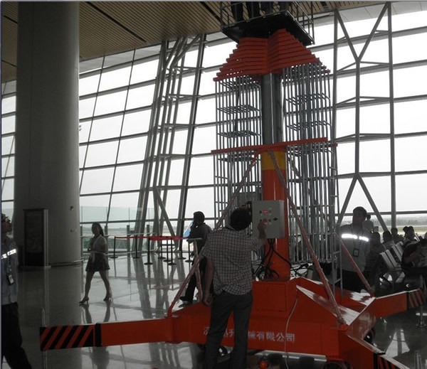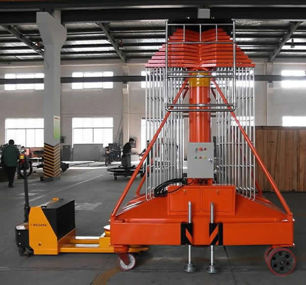 该产品是一种多用途的单作用伸缩式套简油缸组成的垂直升降机械。可广泛用于车站、码头、宾馆大厅、车间等高空作业的场合。整机设计结构紧凑、晃动小、重量轻、移动方便等特点。